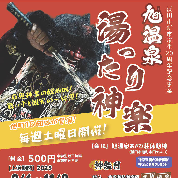 【期間限定】毎週土曜日は湯ったり神楽! 旭温泉あさひ荘にて、石見地域で愛される神楽を毎週土曜日8時半...